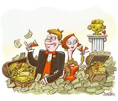 Riqueza não trás felicidade, pois se fosse assim, os ricos seriam os mais felizes, e isso não é uma verdade, eu diria até que é uma contra verdade. Riqueza atrai falsos amores, falsas amizades, e afasta os verdadeiros amigos que não querem ser vistos como aproveitadores.