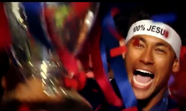 Cada movimento de Neymar é discutido pela mídia Brasileira, e seu rosto enfeita outdoors pelo Brasil, e Neymar como muitos jogadores de futebol do Brasil sempre fala de Deus nas entrevistas, ostentou uma faixa com os dizeres "100% Jesus" e correu ao redor do campo depois que o seu time o Santos e agora o Barcelona conquistaram o campeonato.